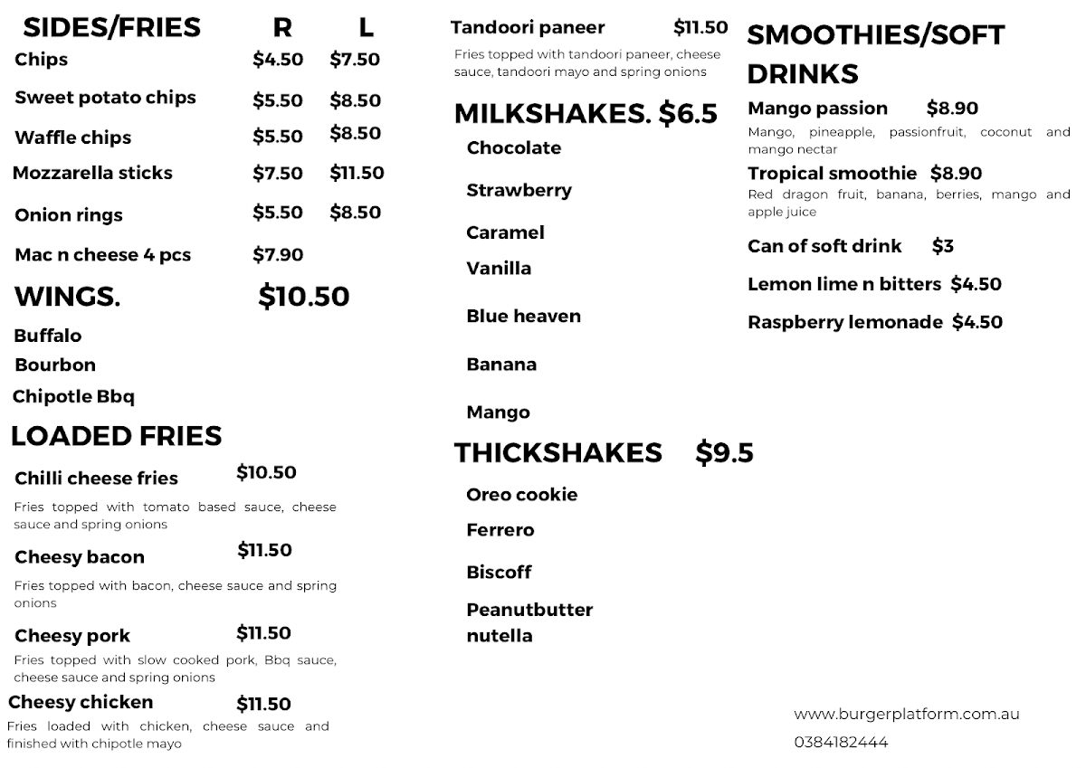 All in all, Burger Platform has a well-rounded menu that caters to diverse tastes and dietary needs, ensuring that every visit is a flavorful adventure.